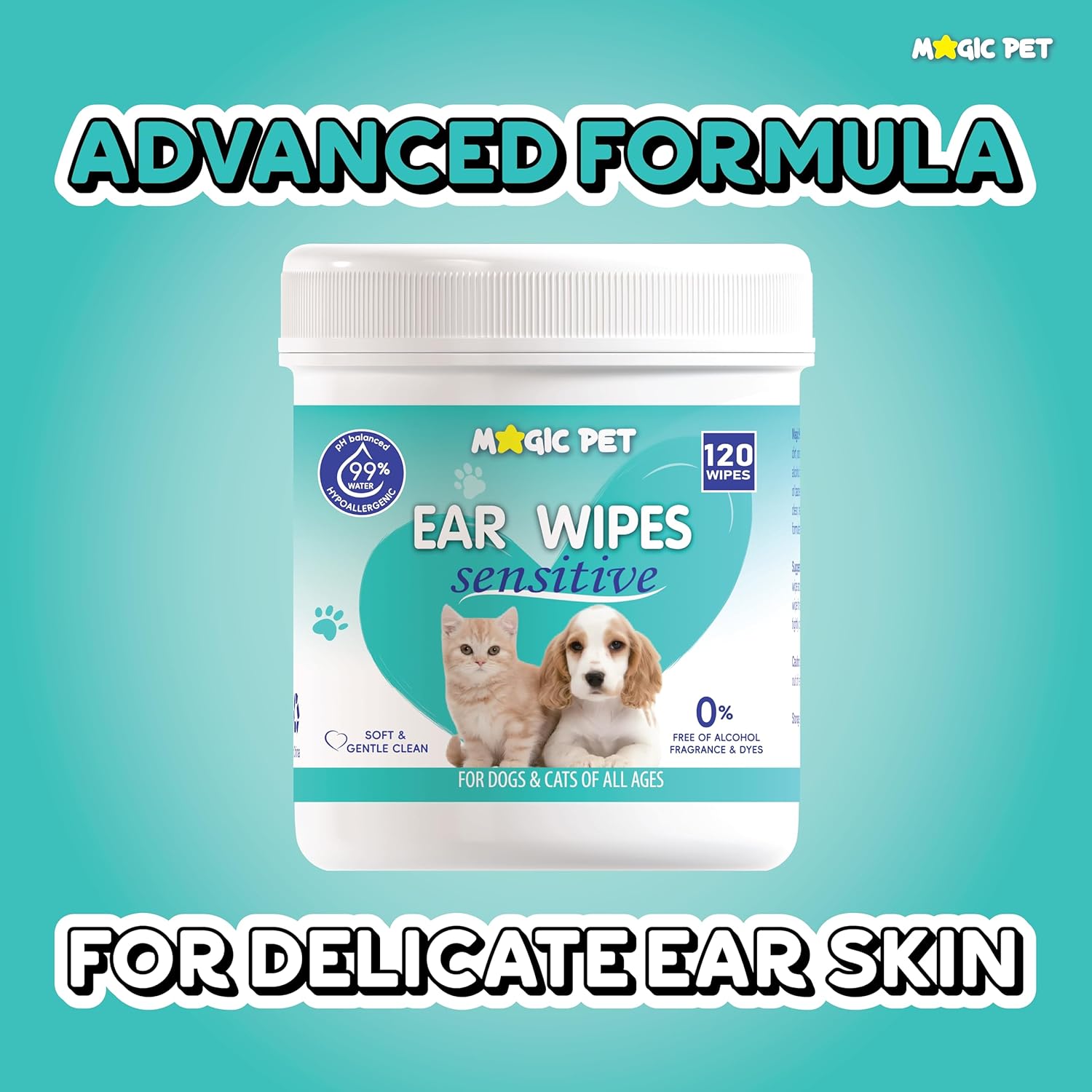 - Magic Pet Ear Wipes provide a gentle, convenient way to support your pet’s ear hygiene. Specially formulated for dogs and cats, these soft wipes are designed to help clean away wax, dirt, and debris from the outer ear area, making them a helpful part of regular grooming routines. Each wipe is pre-moistened with a 99% purified water solution that is hypoallergenic, pH balanced, and free from alcohol, fragrance, and artificial dyes—making it suitable for pets with sensitive skin.